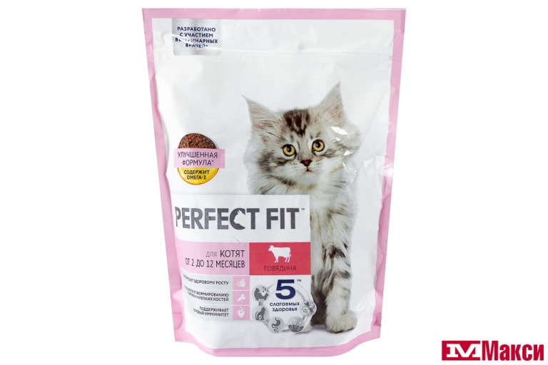 КОРМ ДЛЯ КОШЕК СУХОЙ "PERFECT FIT" 650Г ПАКЕТ(для котят с говядиной) - "для котят с говядиной"