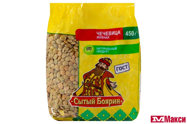 КРУПА ЧЕЧЕВИЦА ЗЕЛЕНАЯ "СЫТЫЙ БОЯРИН" 450Г