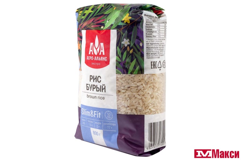 КРУПА РИС (АГРОАЛЬЯНС) БУРЫЙ 800Г ПАКЕТ