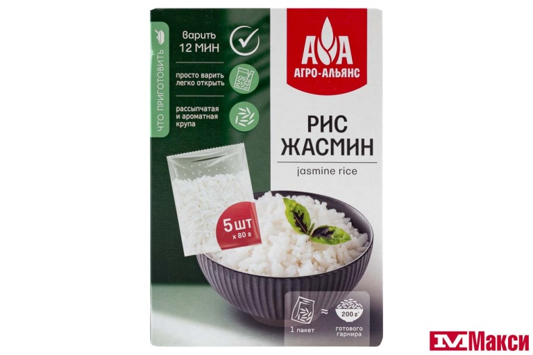 КРУПА РИС (АГРОАЛЬЯНС) ЖАСМИН 5ШТХ80Г ВАРОЧНЫЕ ПАКЕТЫ