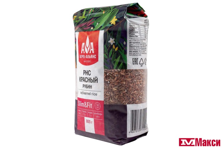 КРУПА РИС "РУБИН" КРАСНОЗЕРНЫЙ 800Г ПАКЕТ (АГРО-АЛЬЯНС ЭКСТРА)