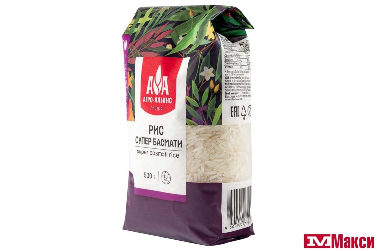 КРУПА РИС СУПЕР БАСМАТИ 500Г ПАКЕТ (АГРО-АЛЬЯНС ЭКСТРА)