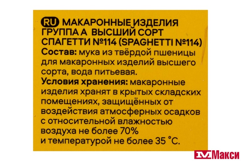Макаронные изделия из муки твердых сортов пшеницы высшего сорта, изготовленные на итальянском оборудовании с использованием бронзовых матриц, что придает изделию дополнительную шероховатость, группа А.