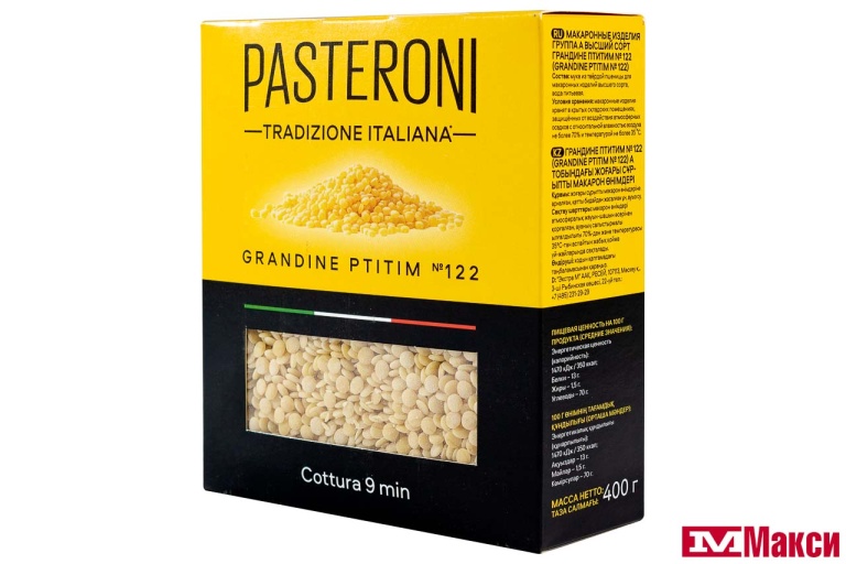 Макароны PASTERONI Грандине птитим №122 приготовлены из твердых сортов пшеницы. Уникальная паста в виде шариков хорошо сохраняет форму при варке, легко пропитывается соусами, содержит много белка и минимальное количество жира. Такие макароны широко используют для приготовления разнообразных блюд Средиземноморской кухни: салатов, супов и гарниров.