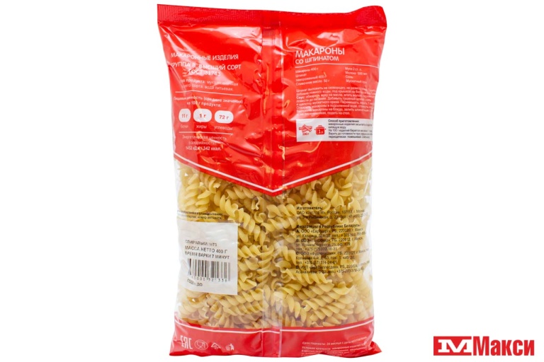 МАКАРОННЫЕ ИЗДЕЛИЯ "ЭКСТРА М" СПИРАЛЬКИ №73 400ГР