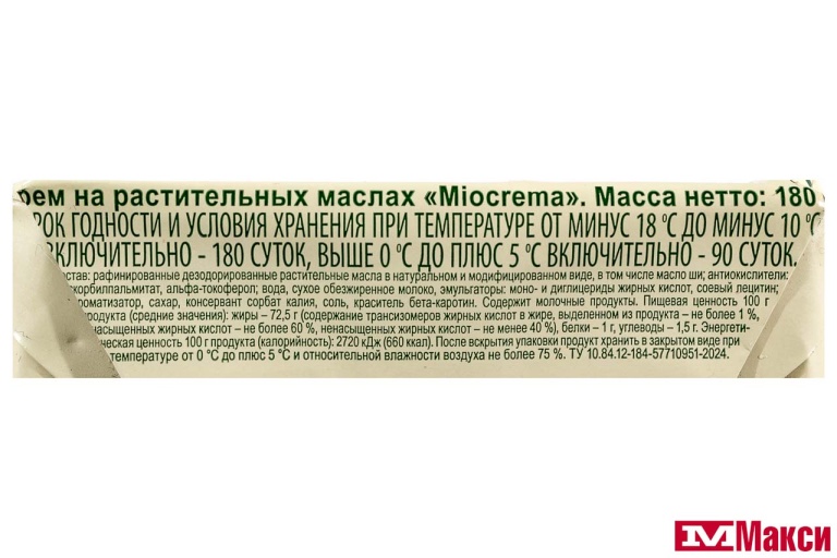 КРЕМ "MIOCREMA" НА РАСТИТЕЛЬНЫХ МАСЛАХ 72,5% 180Г БРИКЕТ (ЕВДАКОВО)