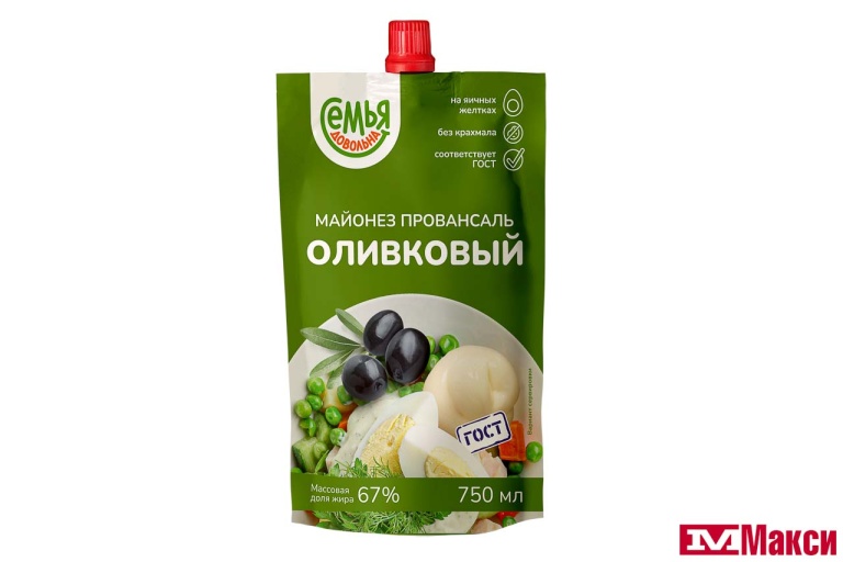 МАЙОНЕЗ "СЕМЬЯ ДОВОЛЬНА" ПРОВАНСАЛЬ ОЛИВКОВЫЙ 67% 680Г ПАКЕТ