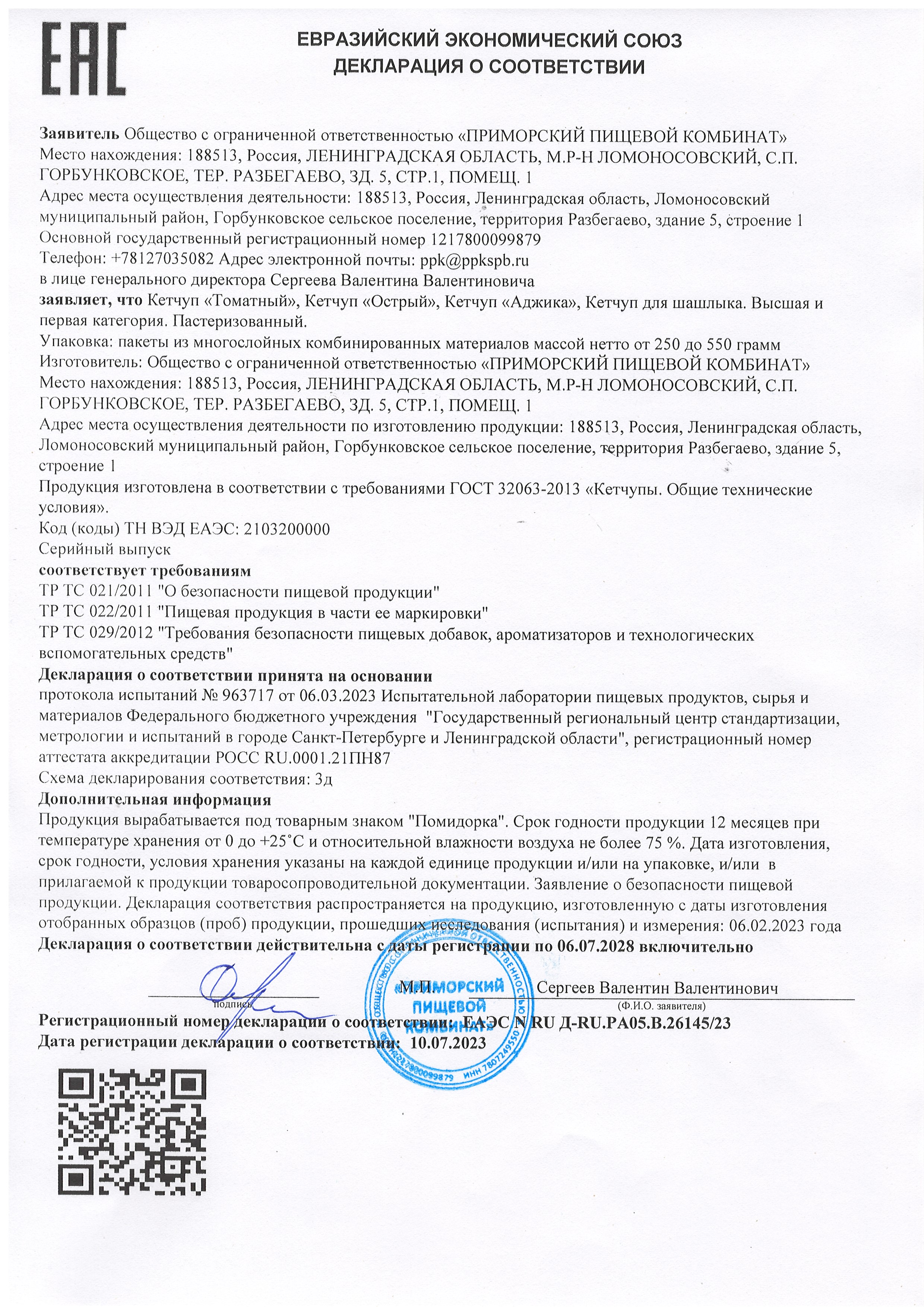 Классический томатный кетчуп "Помидорка" идеально дополнит практически любое блюдо и сделает его еще вкуснее. Без искусственных красителей, ароматизаторов, консервантов и крахмала. Без ГМО. Без глютена.