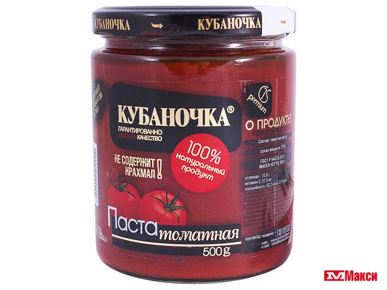 ТОМАТНАЯ ПАСТА "КУБАНОЧКА" 500Г СТ/Б