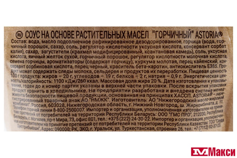 СОУС "АСТОРИЯ" ГОРЧИЧНЫЙ 200Г ПАКЕТ (НМЖК)