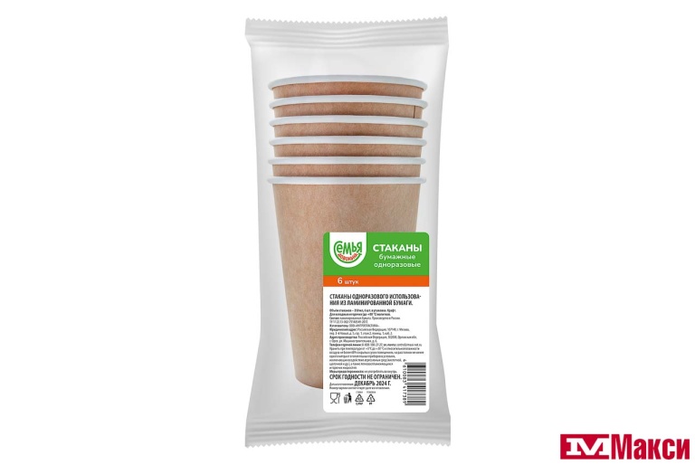 ПОСУДА: СТАКАН ОДНОРАЗОВЫЙ КАРТОННЫЙ 350МЛ 6ШТ (СЕМЬЯ ДОВОЛЬНА)(крафт) - "крафт"