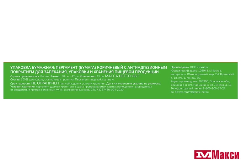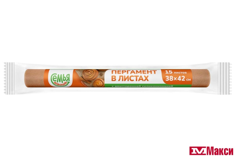 ПЕРГАМЕНТ (БУМАГА) ДЛЯ ВЫПЕКАНИЯ "СЕМЬЯ ДОВОЛЬНА" УМНЫЙ РУЛОН КОРИЧНЕВАЯ 38СМХ42СМ 15ШТ