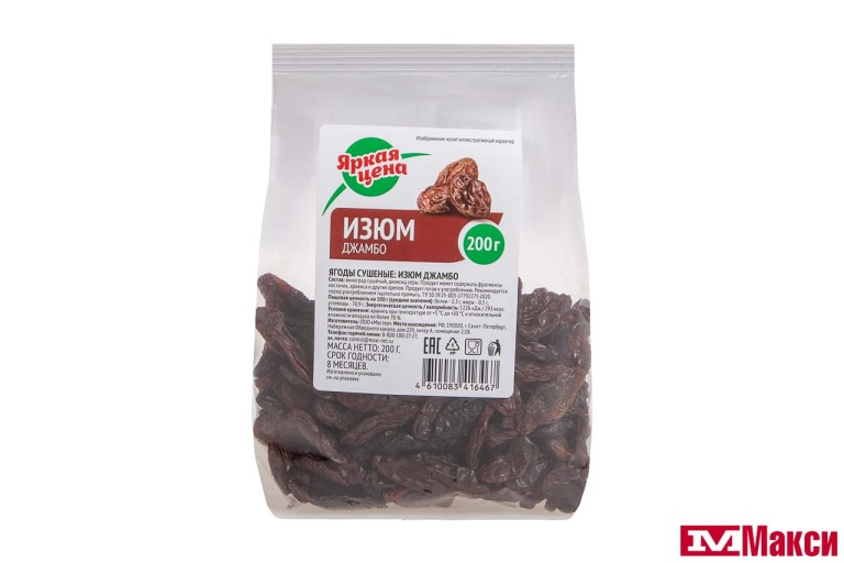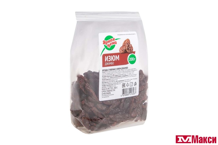 ФРУКТЫ СУШЕНЫЕ ИЗЮМ ДЖАМБО 200Г (ЯРКАЯ ЦЕНА)