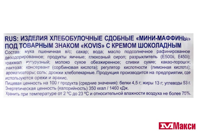 МИНИ-МАФФИНЫ "KOVIS" В АССОРТИМЕНТЕ 470Г (РАМЕНСКИЙ КК)(шоколад) - "шоколад"