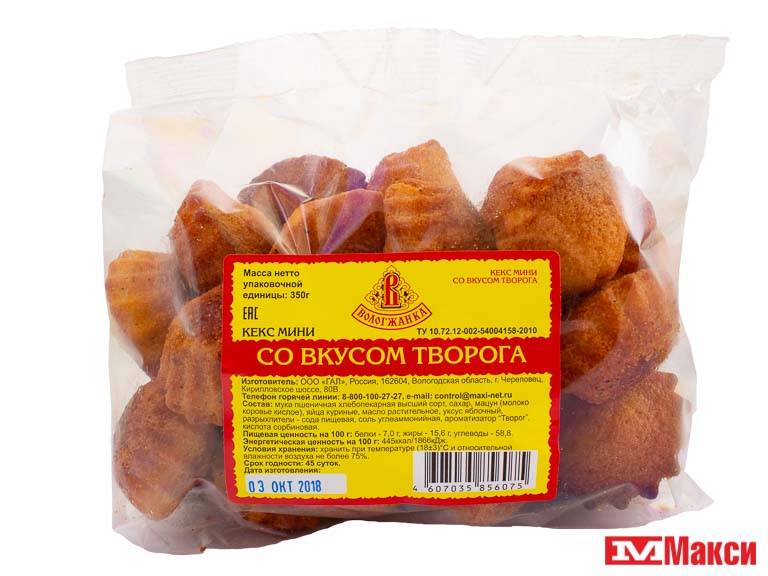 КЕКС "СО ВКУСОМ ТВОРОГА" МИНИ 350Г (ВОЛОГЖАНКА)