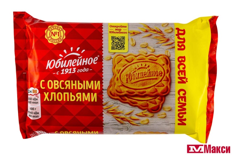 ПЕЧЕНЬЕ "ЮБИЛЕЙНОЕ" ВИТАМИНИЗИРОВАННОЕ С ОВСЯНЫМИ ХЛОПЬЯМИ 224Г (МОН' ДЭЛИС РУСЬ)
