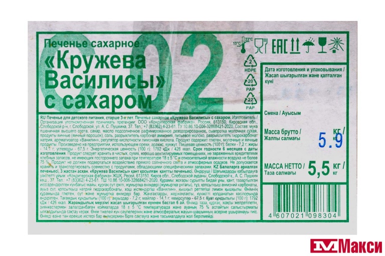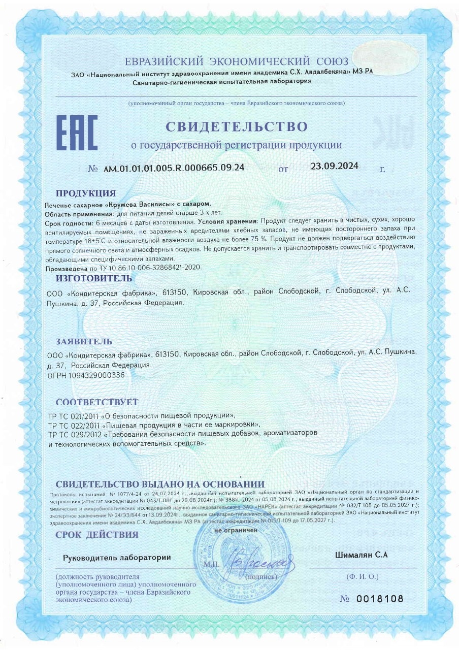 ПЕЧЕНЬЕ "КРУЖЕВА ВАСИЛИСЫ" С САХАРОМ (ДЫМКА) (ДЕТСКОЕ ПИТАНИЕ)