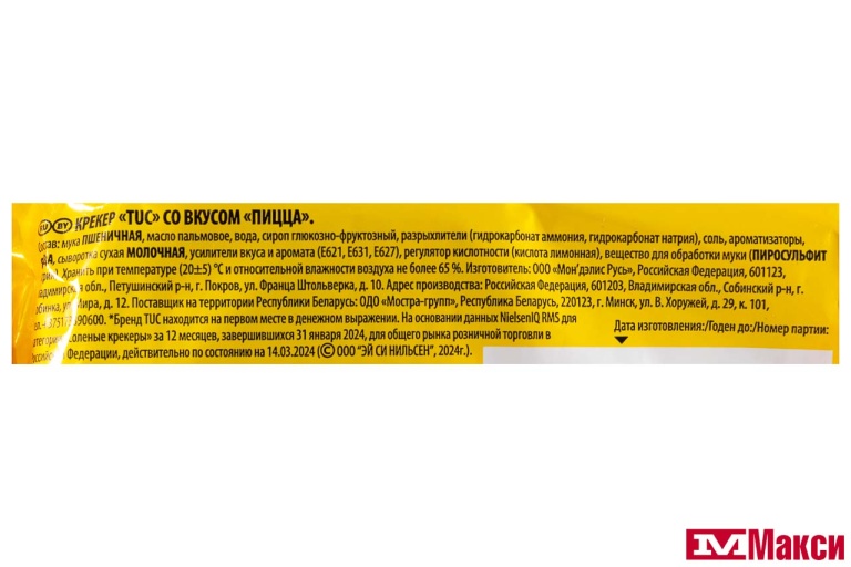 Крекер Tuc Original с солью - это хрустящее тонкое печенье аппетитного золотистого цвета, присыпанное сверху мелкой солью. У него нежная и рассыпчатая текстура, поэтому каждый крекер буквально тает во рту. Если вы не успеваете полноценно позавтракать или пообедать, эти крекеры помогут быстро насытиться и надолго избавят вас от чувства голода. Мало кто знает, но TUC - это аббревиатура, появившаяся во второй половине ХХ века в Бельгии, и расшифровывается она как The Unique Cracker (уникальное печенье). Мало кто знает, но TUC - это аббревиатура, появившаяся во второй половине ХХ века в Бельгии, и расшифровывается она как The Unique Cracker (уникальное печенье).