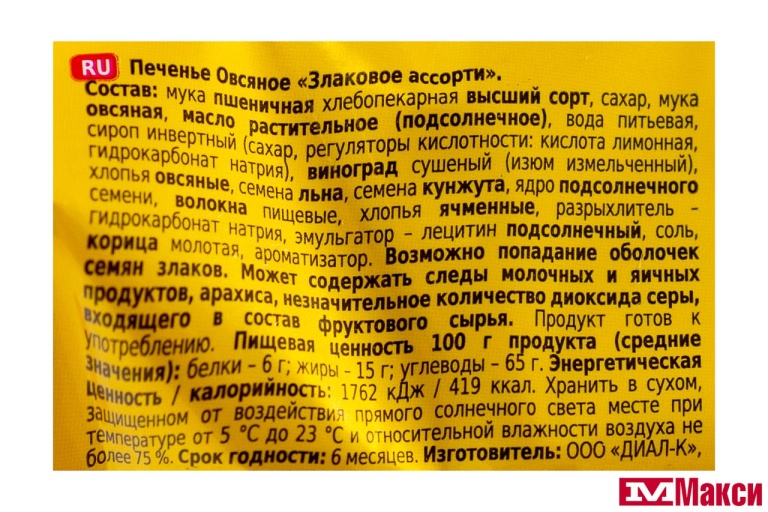 Печенье ХЛЕБНЫЙ СПАС Злаковое ассорти овсяное – это уникальный продукт, который содержит в себе максимальное количество полезных злаков и семян. Печенье обогащено витаминами и микроэлементами, необходимыми для здоровой жизни человека. Без пальмового масла. Содержит высокоолеиновое масло премиум-качества. Постный продукт.