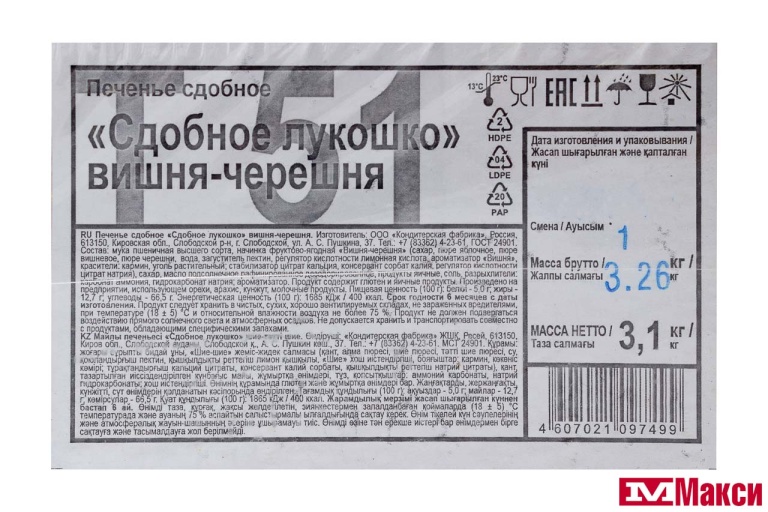 ПЕЧЕНЬЕ "СДОБНОЕ ЛУКОШКО" ВИШНЯ-ЧЕРЕШНЯ (ДЫМКА)