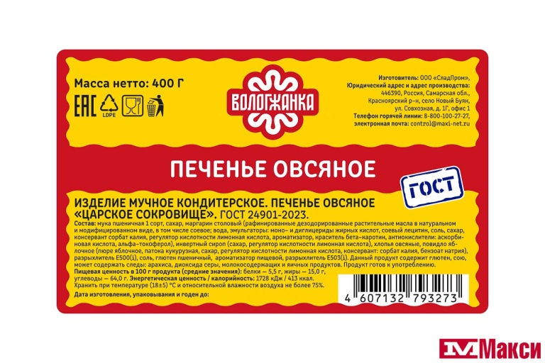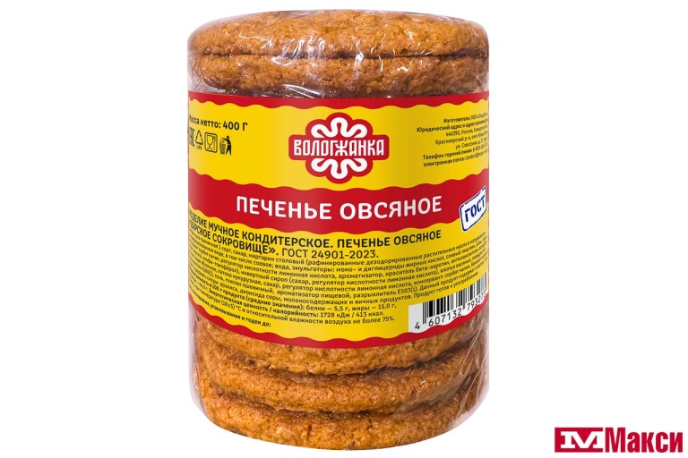 ПЕЧЕНЬЕ "ЦАРСКОЕ СОКРОВИЩЕ" ОВСЯНОЕ 400Г (ВОЛОГЖАНКА)