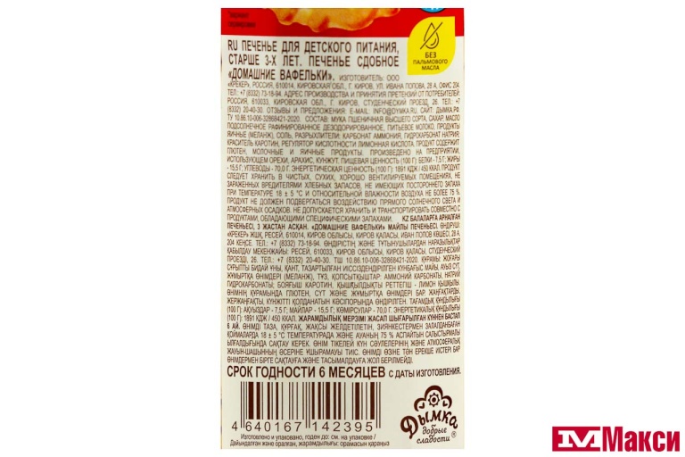 ПЕЧЕНЬЕ "ДОМАШНИЕ ВАФЕЛЬКИ" 235Г (ДЫМКА) (ДЕТСКОЕ ПИТАНИЕ)