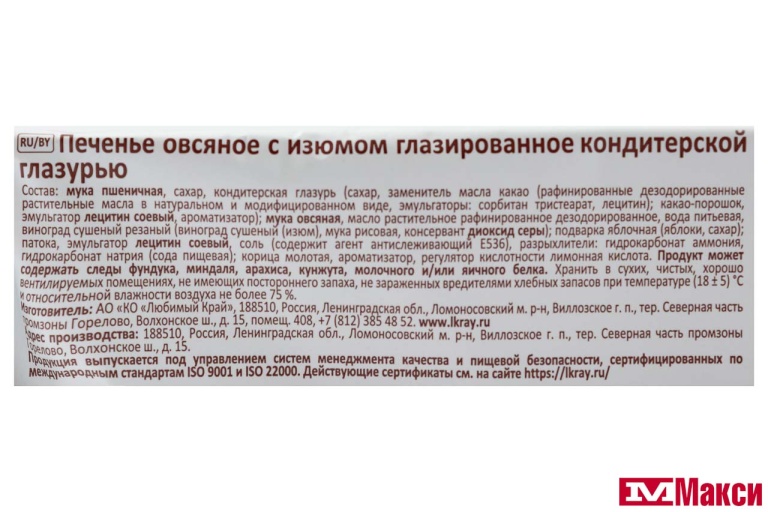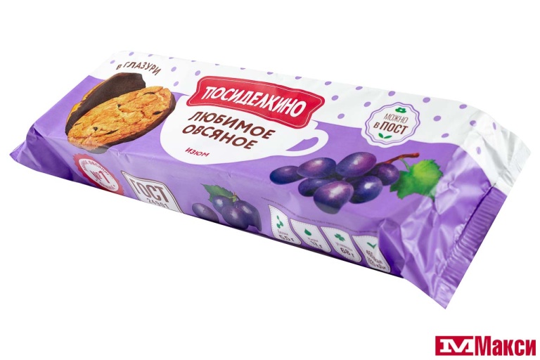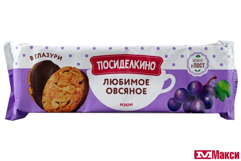 ПЕЧЕНЬЕ (ЛЮБИМЫЙ КРАЙ) "ПОСИДЕЛКИНО" ОВСЯНОЕ С ИЗЮМОМ ГЛАЗИРОВАННОЕ 190Г