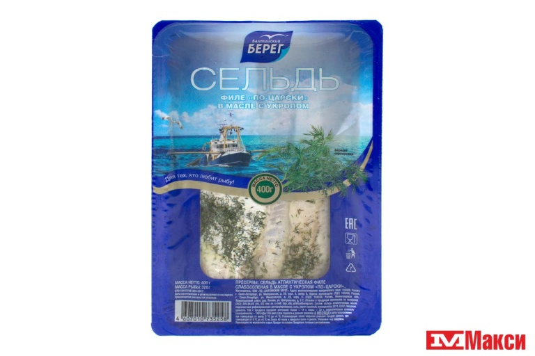 ПРЕСЕРВЫ СЕЛЬДЬ ФИЛЕ "ПО-ЦАРСКИ" 400Г ЛОТОК (БАЛТИЙСКИЙ БЕРЕГ)(в масле с укропом) - "в масле с укропом"
