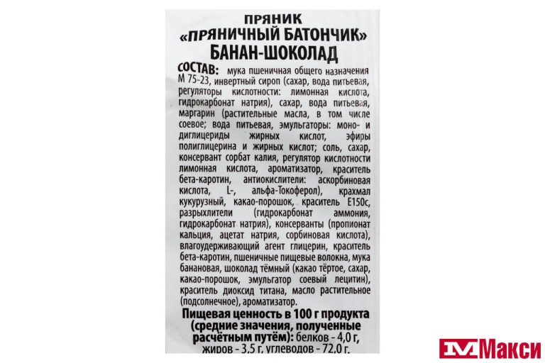 ПРЯНИК "ПРЯНИЧНЫЙ БАТОНЧИК" БАНАН-ШОКОЛАД 90Г (СЛАДКИЕ ГОСТИНЦЫ)
