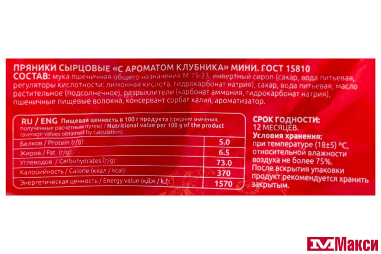 ПРЯНИКИ "С АРОМАТОМ КЛУБНИКА" МИНИ 350Г (САЖИНСКИЙ)