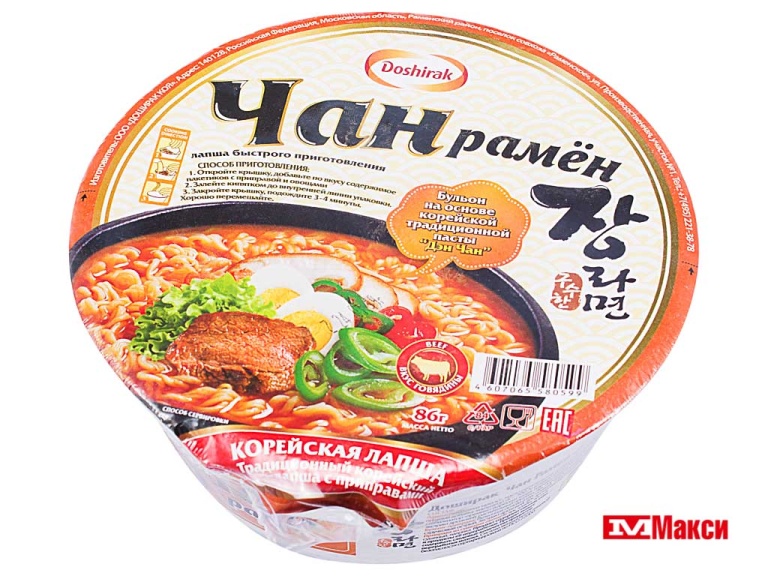ЛАПША БЫСТРОГО ПРИГОТОВЛЕНИЯ "ДОШИРАК" ЧАН РАМЕН СО ВКУСОМ ГОВЯДИНЫ 86Г