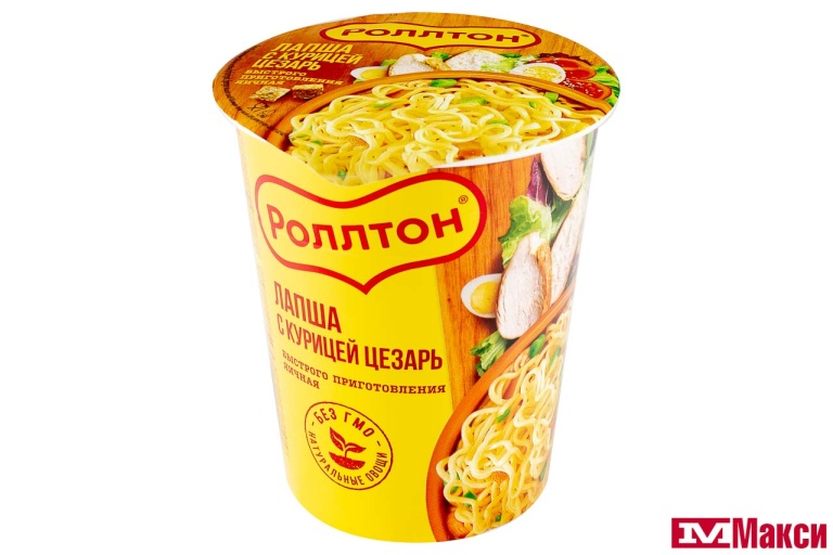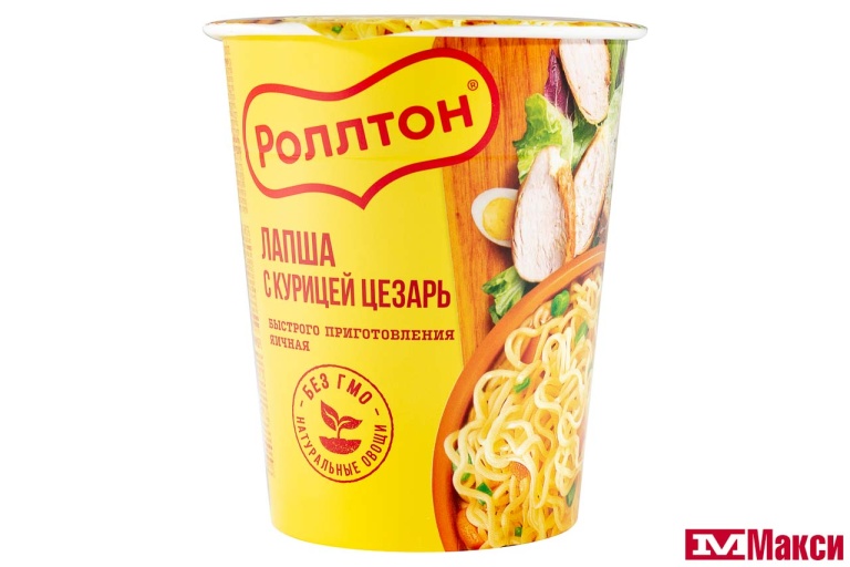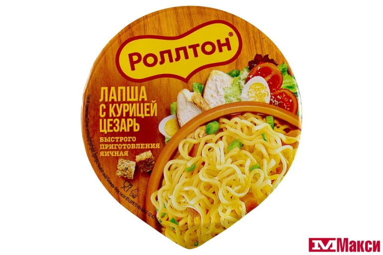 Яичная лапша быстрого приготовления Роллтон «Куриный Цезарь», в стакане, 70 г. Горячая порция вкуснейшей яичной лапши Ролтон быстрого приготовления с сушёными овощами и кусочками курицы. Высококачественная вермишель Ролтон может быть не только отдельным блюдом, но и использоваться в качестве основы для вторых блюд и салатов. Для приготовления горячего супа с лапшой вам понадобится всего несколько минут.