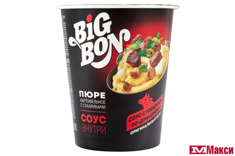ПЮРЕ КАРТОФЕЛЬНОЕ БЫСТРОГО ПРИГОТОВЛЕНИЯ "БИГ БОН" 60Г(с сухариками + соус с говядиной) - "с сухариками + соус с говядиной"
