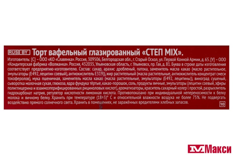 ТОРТ "СТЕП MIX" ВАФЕЛЬНЫЙ ГЛАЗИРОВАННЫЙ 200Г (СЛАВЯНКА)