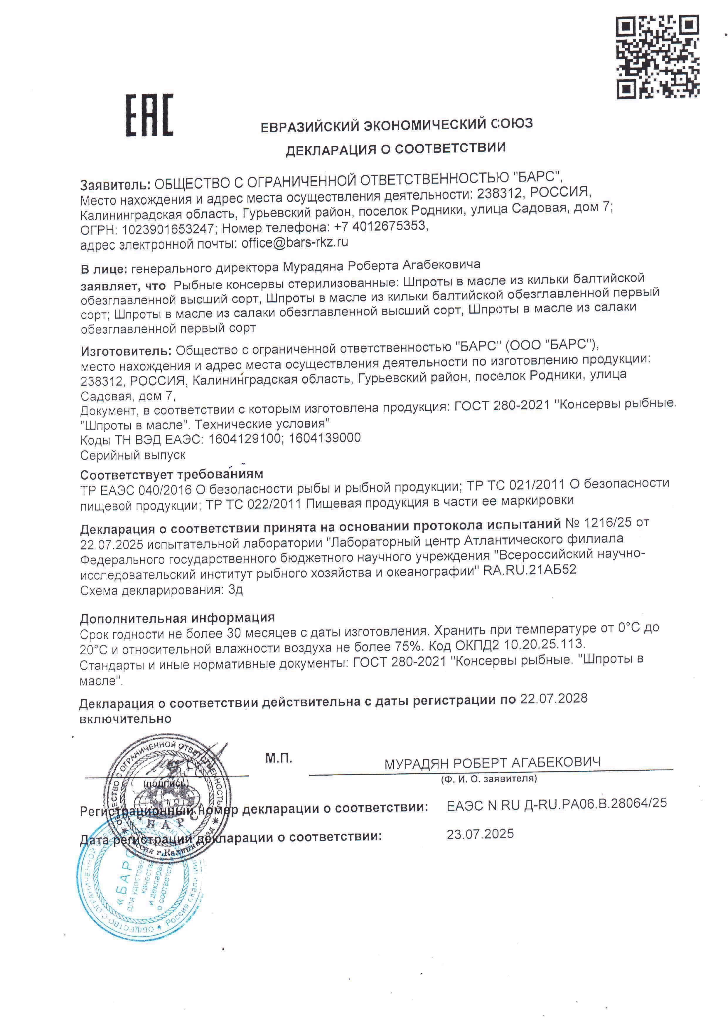 ШПРОТЫ В МАСЛЕ "БАРС" 160Г Ж/Б С КЛЮЧОМ (ПРОДМОСТ)