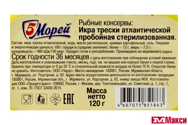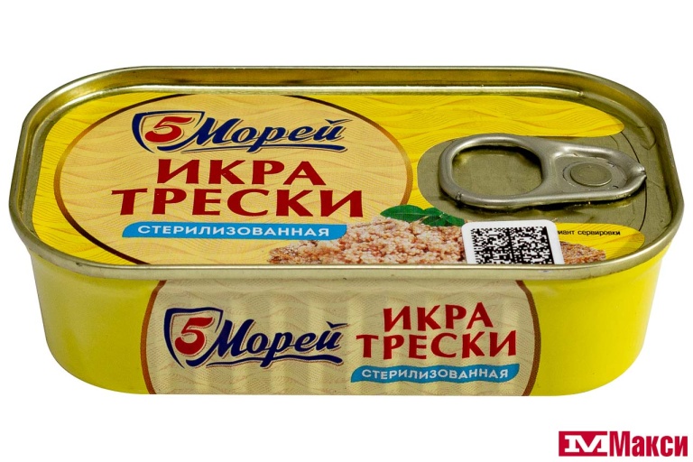 ИКРА ТРЕСКИ АТЛАНТИЧЕСКОЙ "5 МОРЕЙ" 120Г Ж/Б