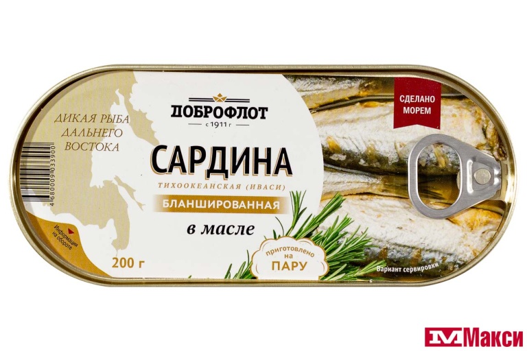 САРДИНА (ДОБРОФЛОТ) ТИХООКЕАНСКАЯ ИВАСИ БЛАНШИРОВАННАЯ В МАСЛЕ 200Г Ж/Б