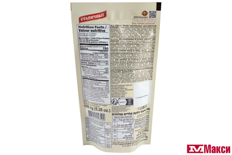 СЕМЕЧКИ "СТАНИЧНЫЕ" ТЫКВЕННЫЕ 150Г