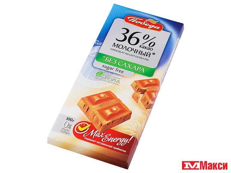 ШОКОЛАД "ПОБЕДА" МОЛОЧНЫЙ 36% КАКАО БЕЗ САХАРА 100Г