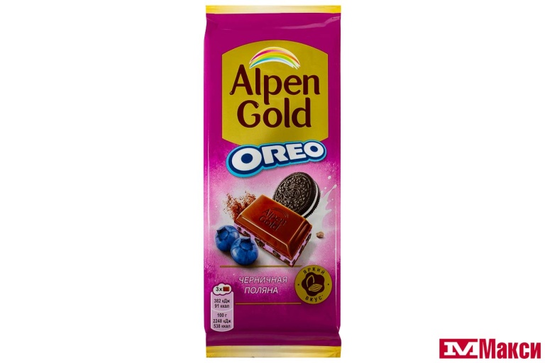 ШОКОЛАД "АЛЬПЕН ГОЛД" ОРЕО МОЛОЧНЫЙ С НАЧИНКОЙ ЧЕРНИКА 85Г (МОН' ДЭЛИС РУСЬ)