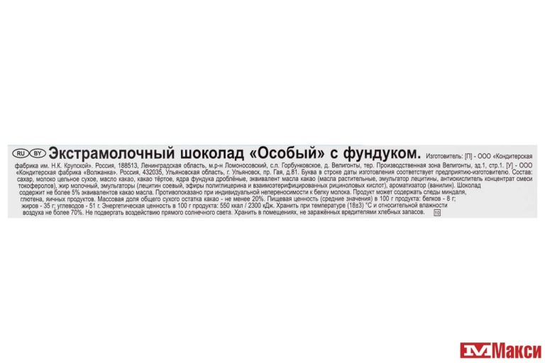 ШОКОЛАД "ОСОБЫЙ" ЭКСТРАМОЛОЧНЫЙ С ФУНДУКОМ 85Г (КРУПСКАЯ)