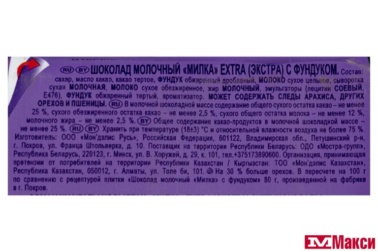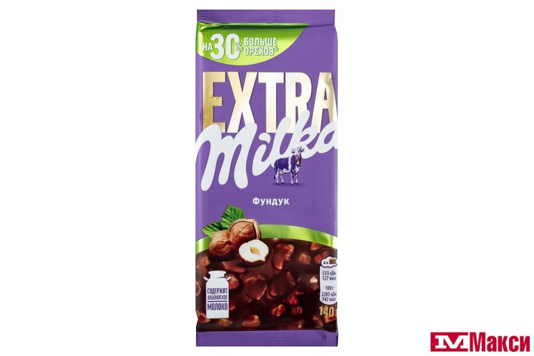 ШОКОЛАД "МИЛКА" EXTRA МОЛОЧНЫЙ С ФУНДУКОМ 140Г (МОН' ДЭЛИС РУСЬ)