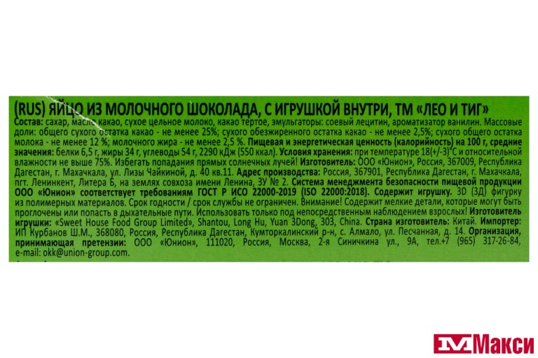 ЯЙЦО ШОКОЛАДНОЕ С ИГРУШКОЙ 20Г (ЛЕО И ТИГ)