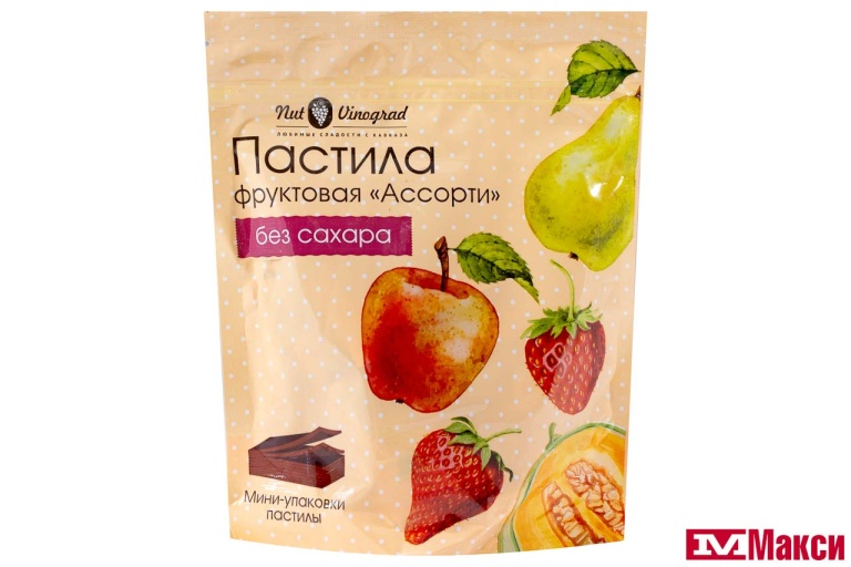 ПАСТИЛА (NUT VINOGRAD) ФРУКТОВАЯ АССОРТИ 200Г (яблоко, груша, дыня, клубника) - "яблоко, груша, дыня, клубника"