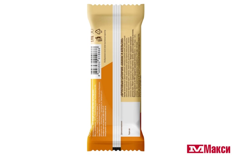 БАТОНЧИК ФРУКТОВЫЙ 33Г (ПРОПОЛЬЗУ)(ананас-апельсин) - "ананас-апельсин"