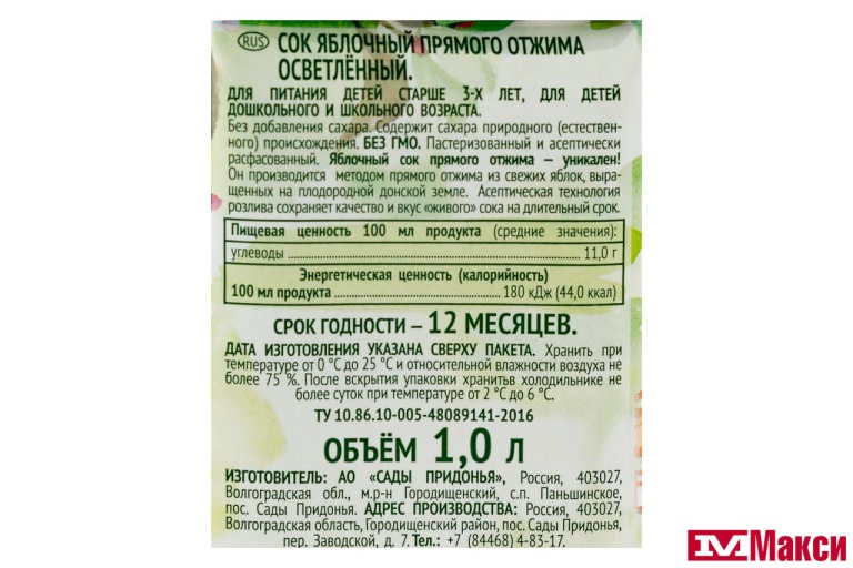 Производится по уникальной технологии из отборных свежих яблок, выращенных в собственных садоводческих хозяйствах Волгоградской области! Качество и вкус свежевыжатого сока гарантирует асептическая упаковка