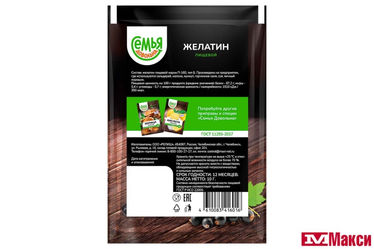 СПЕЦИИ "СЕМЬЯ ДОВОЛЬНА" ЖЕЛАТИН ПИЩЕВОЙ 10Г