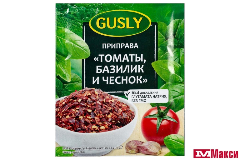 ПРИПРАВА "GUSLY" ТОМАТЫ, БАЗИЛИК И ЧЕСНОК 20Г