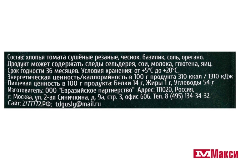 томатные хлопья (томатное пюре, кукурузный крахмал), чеснок, базилик, соль, орегано