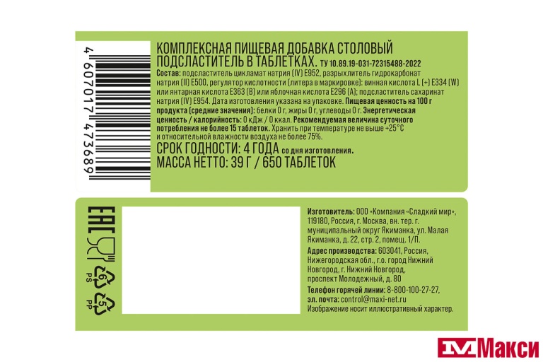 ЗАМЕНИТЕЛЬ САХАРА "СЕМЬЯ ДОВОЛЬНА" 650ТАБ